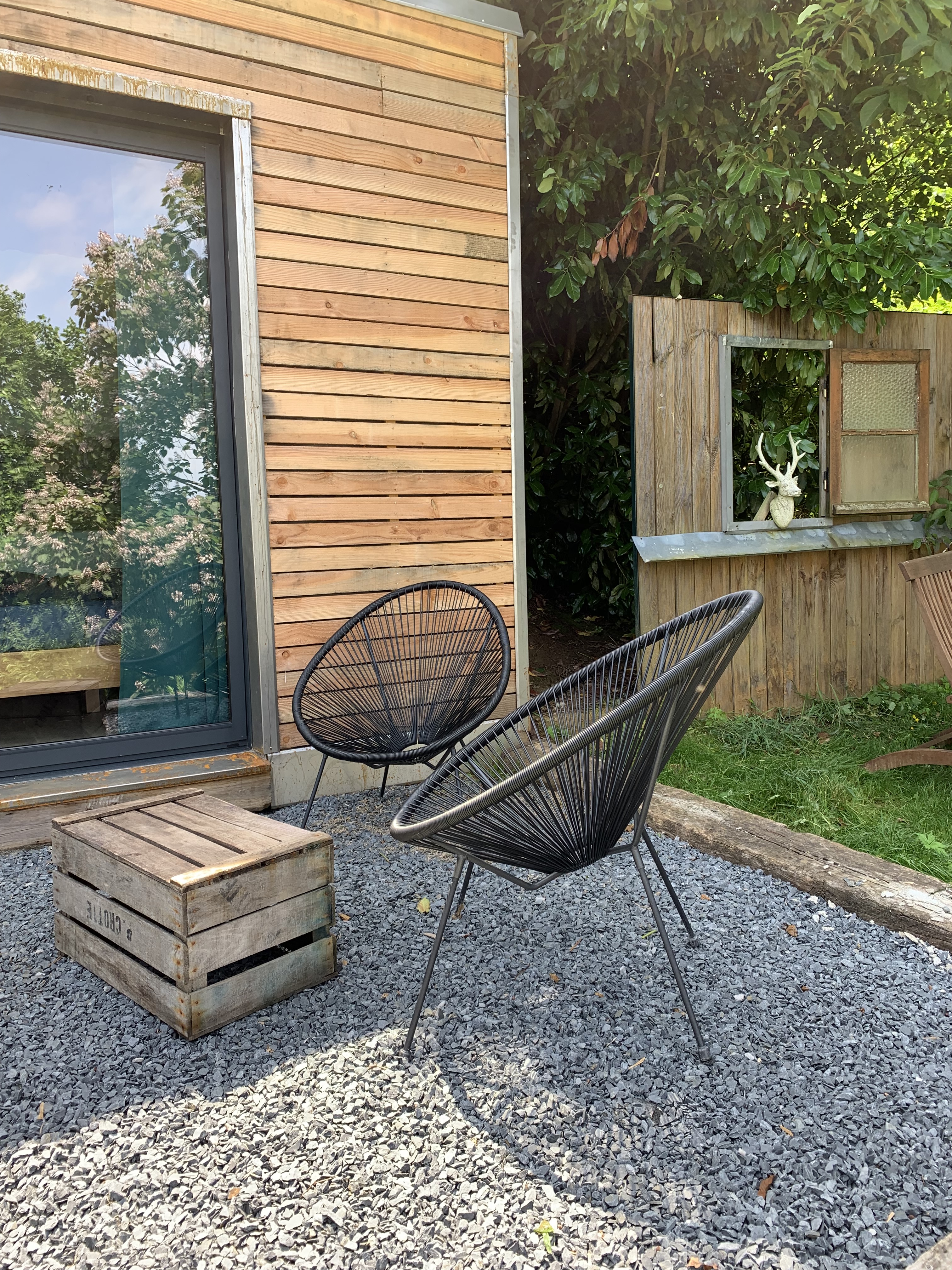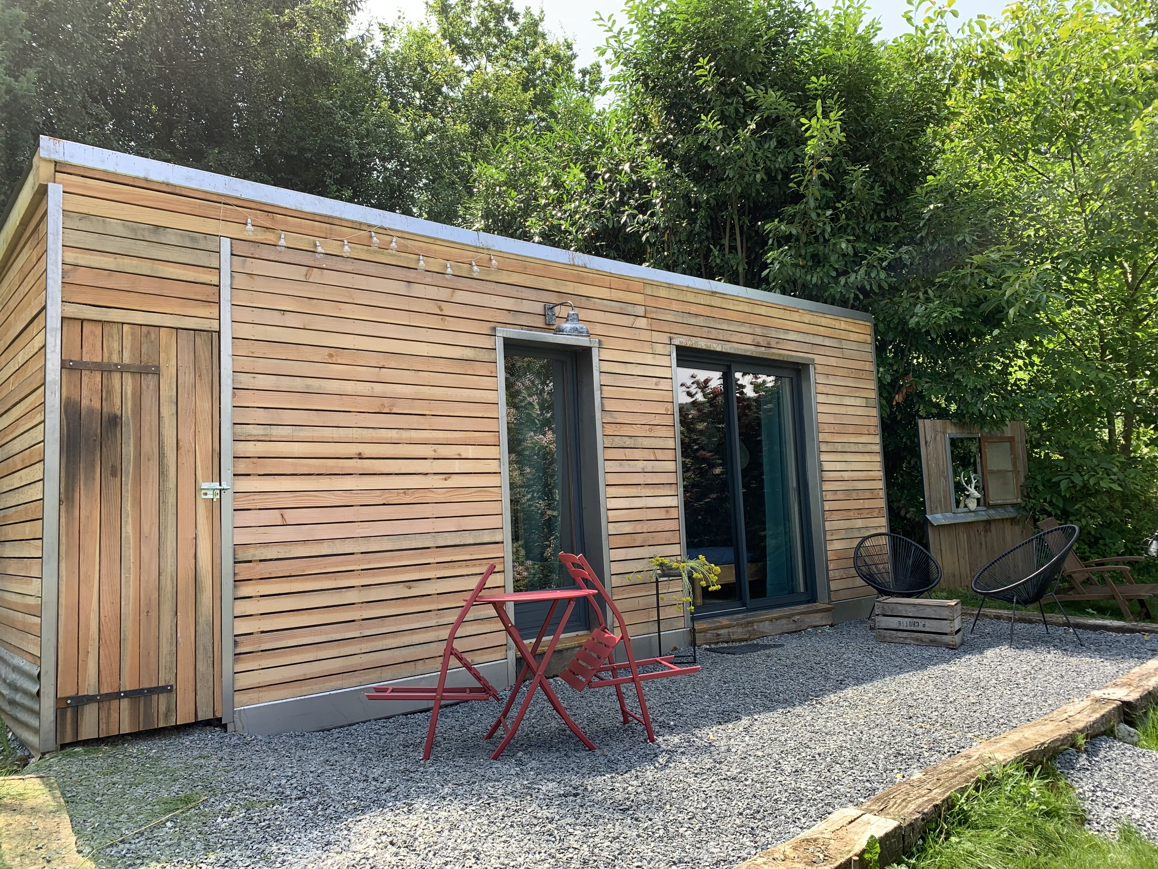 A deux, en solo, embarquez à bord de cet ancien conteneur maritime avec vue sur le jardin, le château et même la forêt. Amarré en haut du jardin vous serez isolé par les arbres et vous surplomberez le village, vous offrant une vue sur la forêt.